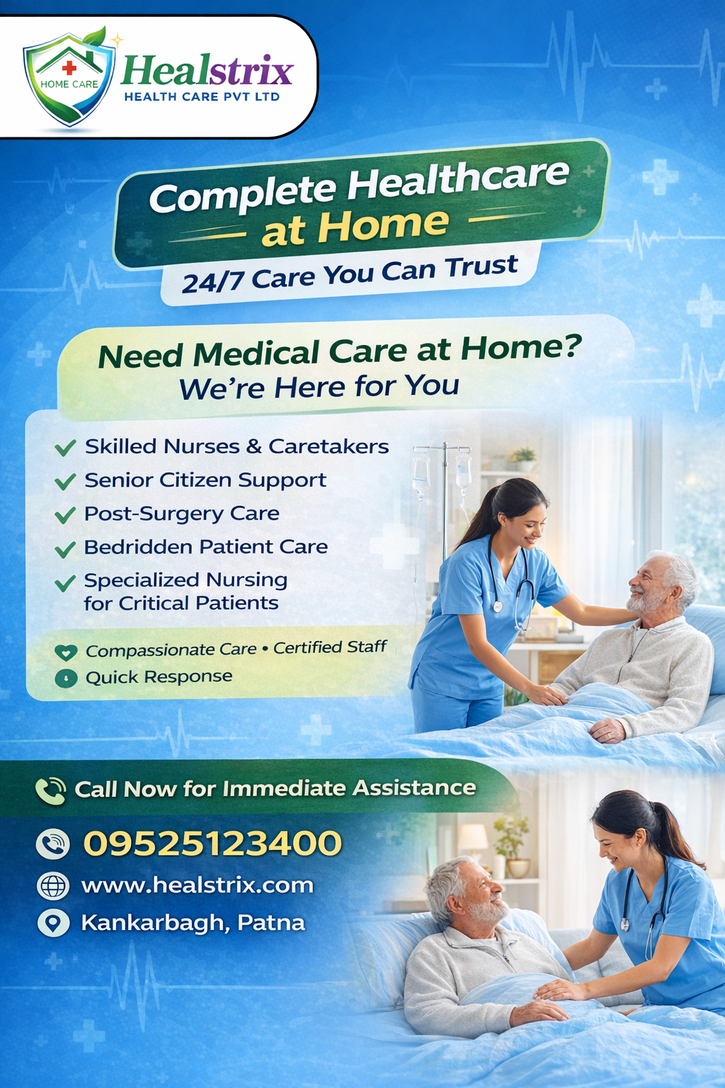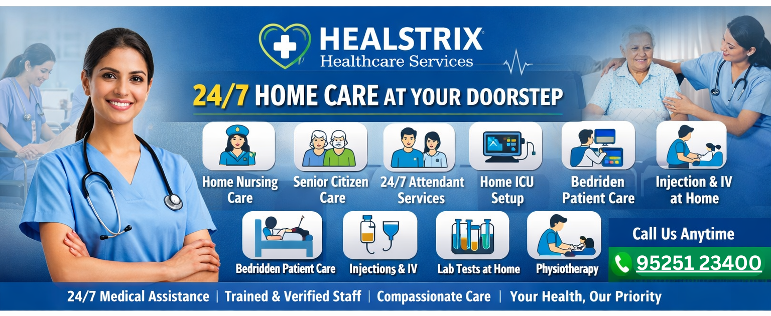 Healstrix Health Care provides professional and affordable home care services in Patna. We bring hospital-level care to the comfort of your home with safety and compassion.